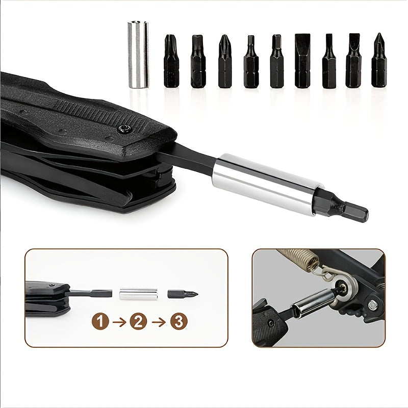 12-in-1 functionality including folding knife, pliers, bottle opener, screwdriver, saw, can opener, wire stripper, file, and more
