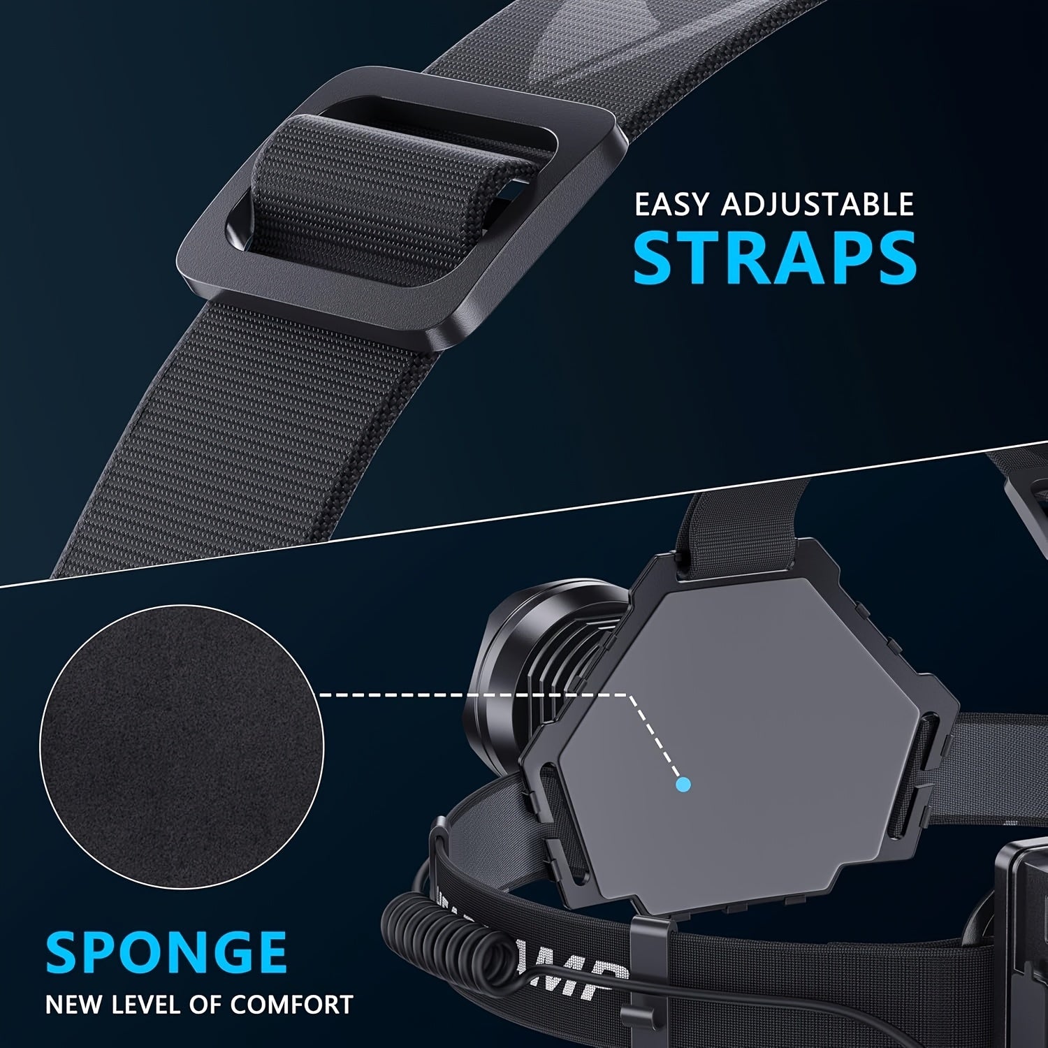 Equipped with a high-performance XHP-70 LED chip, this headlamp can illuminate distances up to 1680 metres, making it perfect for both night-time adventures and work tasks. Its energy-saving mode ensures long lifespan while providing reliable brightness when needed.