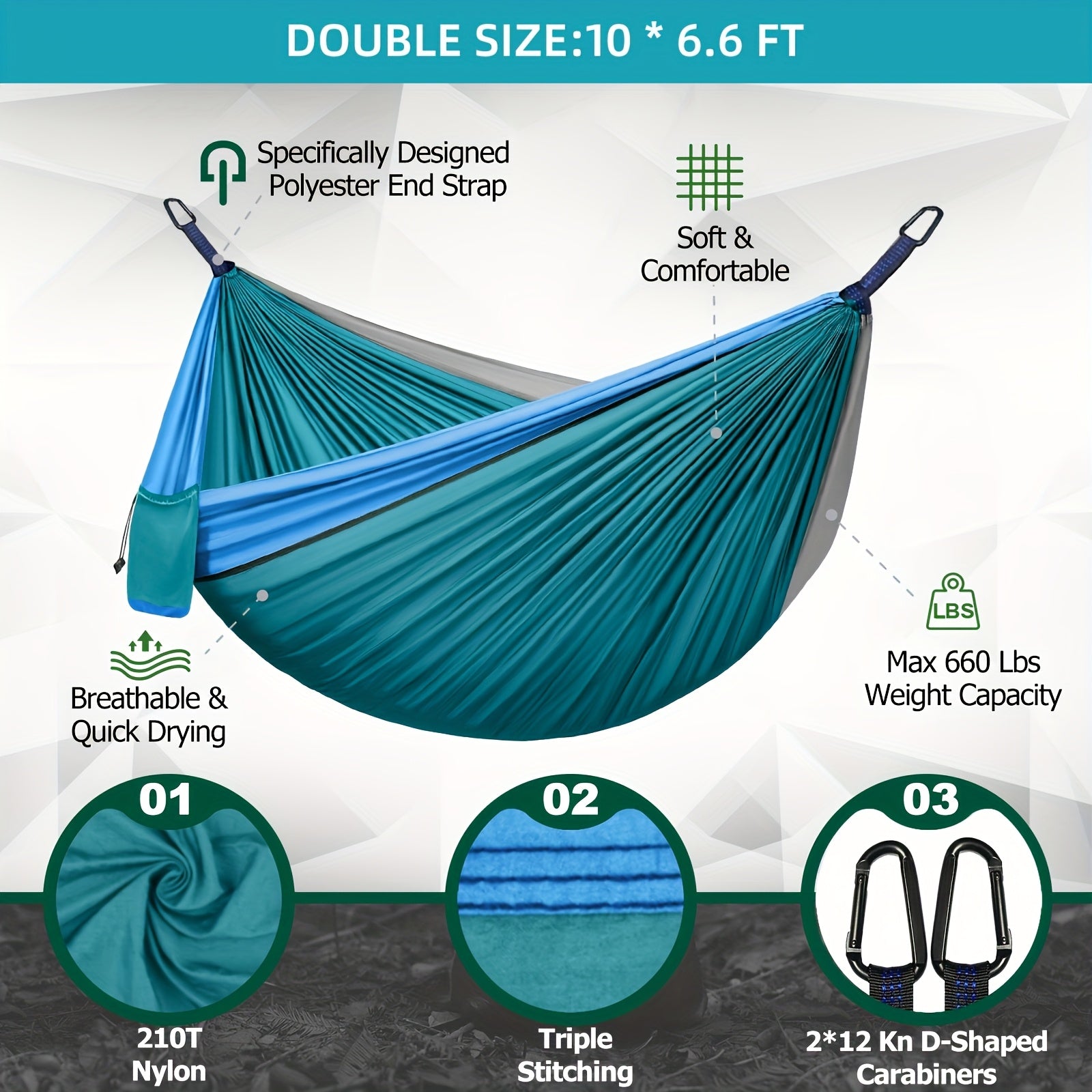 Relax anywhere with ease and comfort using this extra-large double camping hammock – your perfect companion for outdoor adventures.
